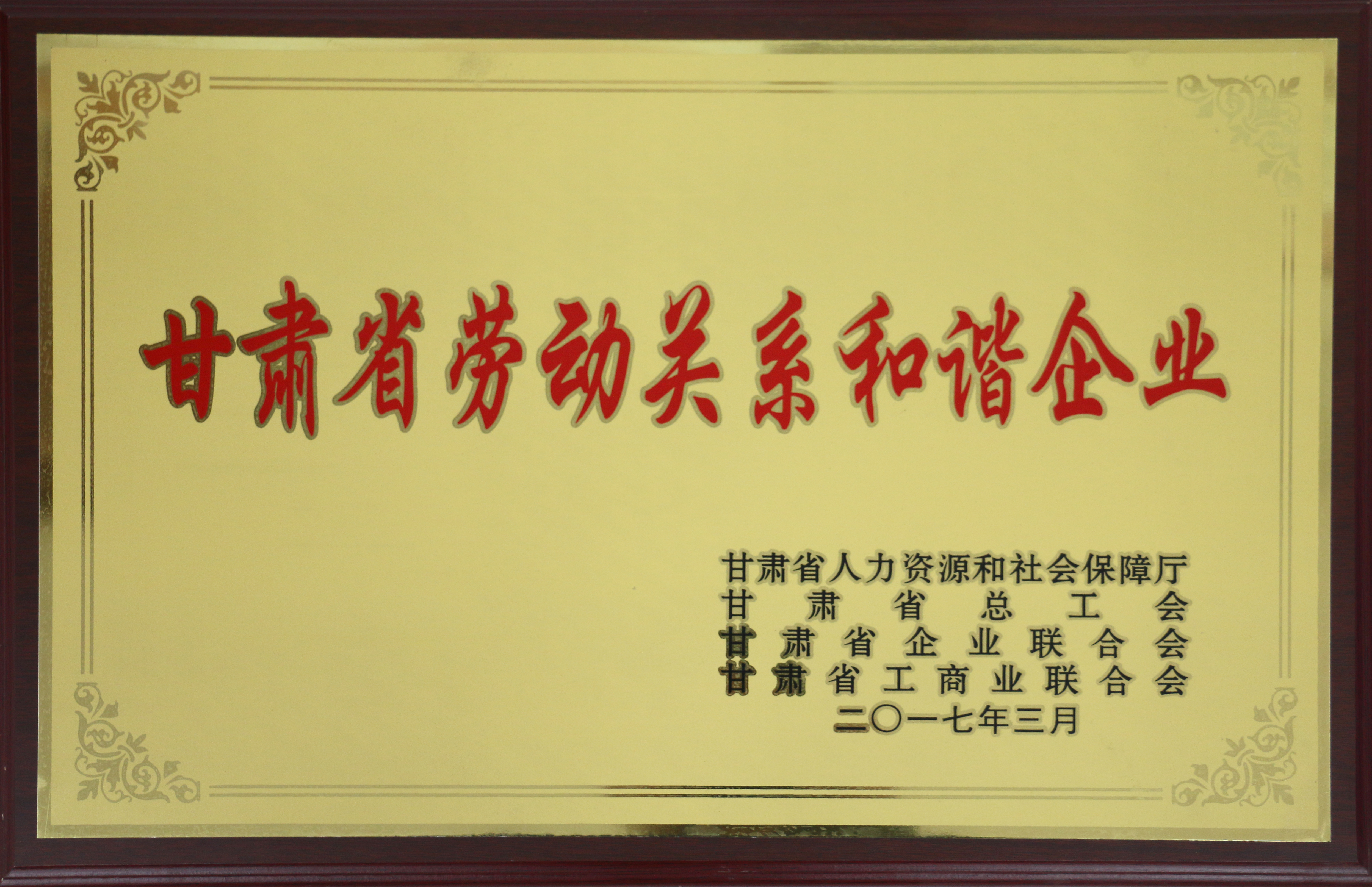 • 甘肅省勞動(dòng)關(guān)系和諧企業(yè)