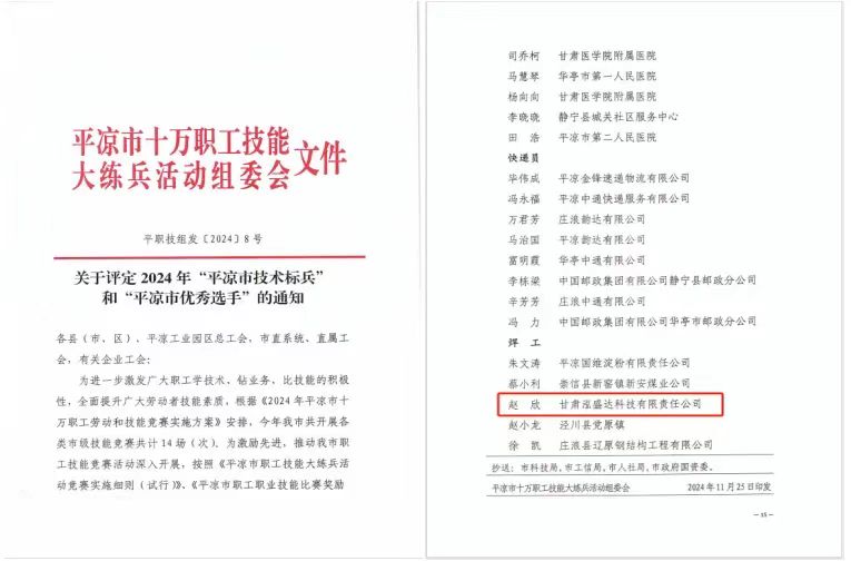 2024-11-26近日,平?jīng)鍪惺f職工技能大練兵活動組委會印發(fā)了關(guān)于評定2024年“平?jīng)鍪屑夹g(shù)標兵”和“平?jīng)鍪袃?yōu)秀選手”的通知,甘肅泓盛達科技有限責任公司趙欣獲得“平?jīng)鍪袃?yōu)秀選手”稱號。趙欣此次獲得“平?jīng)鍪袃?yōu)秀選手”榮譽稱號,既是對他個人敬業(yè)精神的充分肯定,也是對公司
